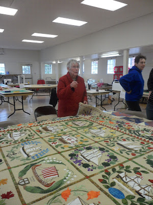It was fun to see what everyone was working on. We had a very special time of show and tell. A very talented lady who lives locally brought her Tall Ships quilt to share with us. It is amazing! All of the applique and is quilting done by hand